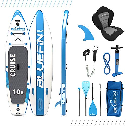 Bluefins Cruise 10’8 ist ein 325 cm langes Allround Board, das 77 cm breit und 15 cm dick ist. Das Cruise 10’8 ist für eine maximale Traglast von 130 Kilogramm ausgelegt. Geliefert wird das Bluefin Cruise 10’8 in einem Set bestehend aus dem SUP, einem montierbaren Kajaksitz, einer Luftpumpe, einem Leash, einer Tragetasche und einem doppelseitigen Paddel aus Fiberglas.